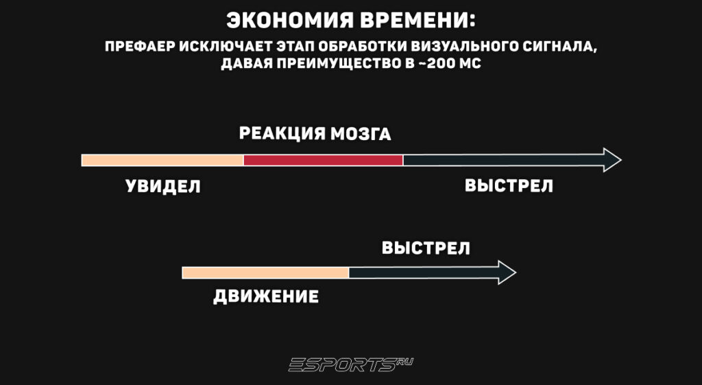 Префаер работает только при идеальной точности, которая достижима при полной остановке модели. Сначала вы делаете стрейф, затем резко прожимаете клавишу в противоположную сторону для моментальной остановки — и только в эту долю секунды нажимаете на выстрел. В CS2 сервер регистрирует попадание мгновенно, поэтому пуля летит точно в цель только в тот момент, когда ваша скорость персонажа равна нулю.