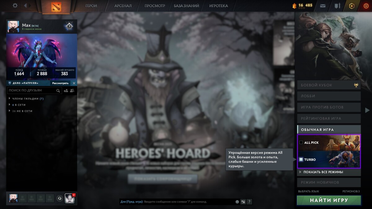 При этом в Turbo нет необходимости много думать о мете, тут удобно повышать порядочность с вежливостью, поскольку длительность матчей короткая и можно без массы осуждений брать тех героев, которых в текущих реалиях патча не берут и стабильно побеждать с ними. За это тебе никто не отправит репорт со старта, не будет ругаться в чате и, соответственно, отчёт о порядочности будет положительным.