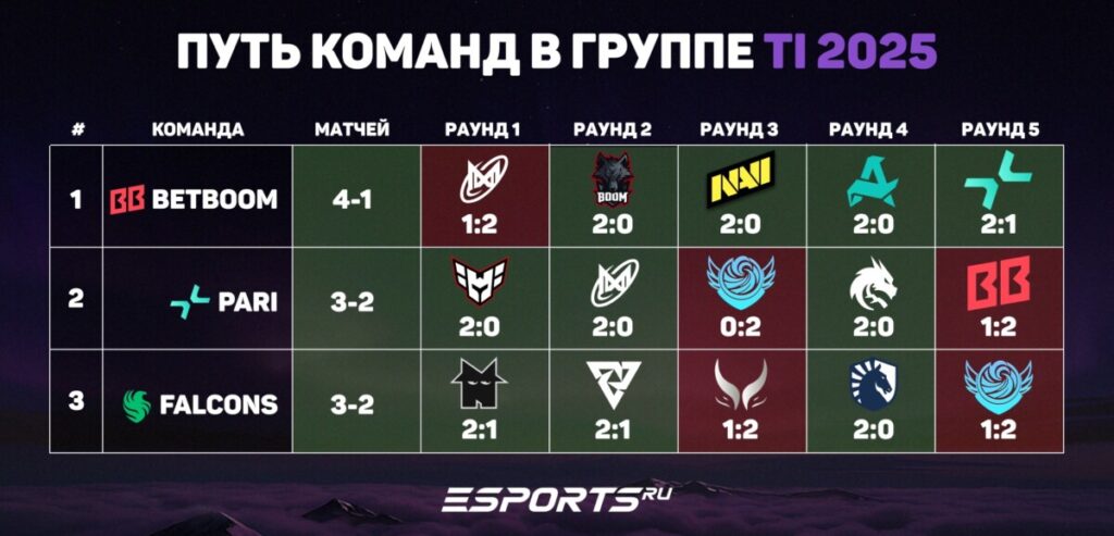 Team Falcons и покинули чемпионат. Для многих фанатов это стало сенсацией, ведь Spirit считались фаворитами и входили в список главных претендентов на плей-офф. Однако Falcons сумели навязать борьбу и доказали, что готовы конкурировать и бороться за титул на TI.