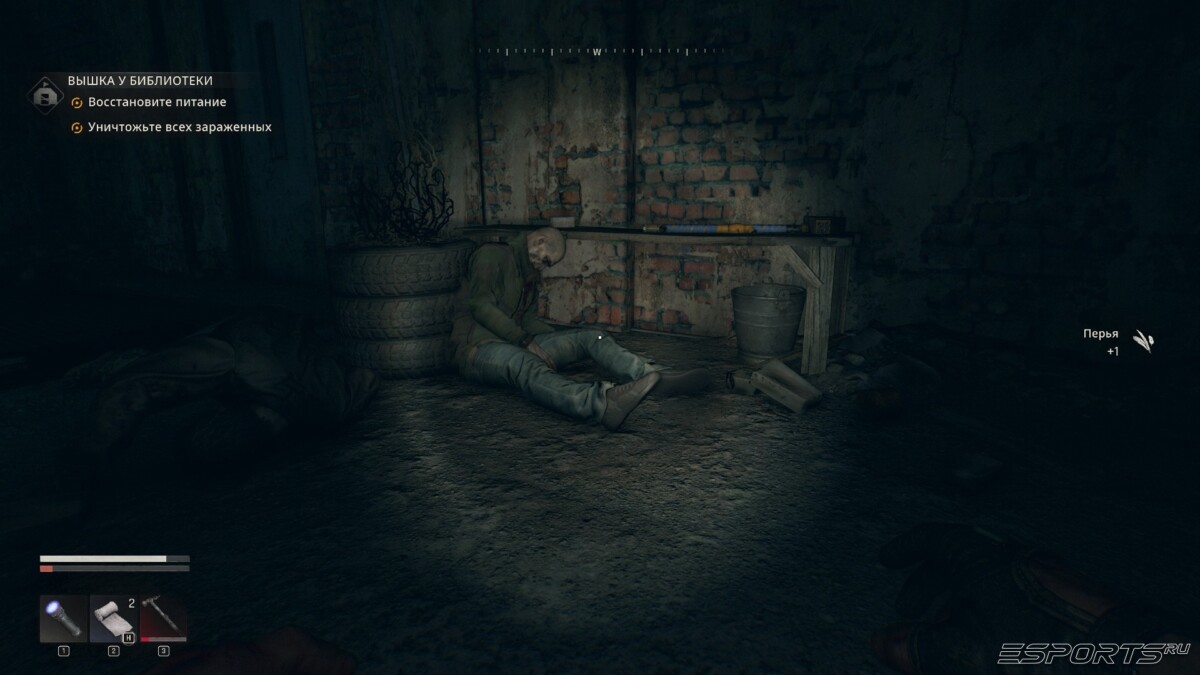 - Устраните пару зомби внутри — один из них будет открыто стоять посреди коридора, а другой прикинется мертвецом рядом со столиком с "Гусём";