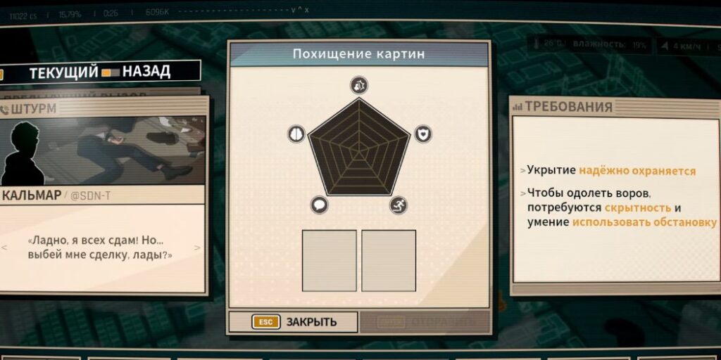Первая мини-игра со взломом, которая позволяет игроку познакомиться с общими принципами. В будущем у неё может появиться таймер, который сделает графу “Попыток до блокировки” важной. Однако в этот раз у игрока нет никакой возможности провалить задание. Также не следует переживать о потраченном времени и по части горящих миссий — на глобальной карте время “замирает”.
