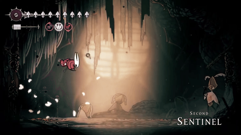 - Выпад и удар. Второй Страж выполняет выпад вперёд, за которым следует рубящая атака. Самый простой способ уклониться — прыгнуть за босса во время выпада. После прыжка вы окажетесь в безопасной позиции для контратаки.