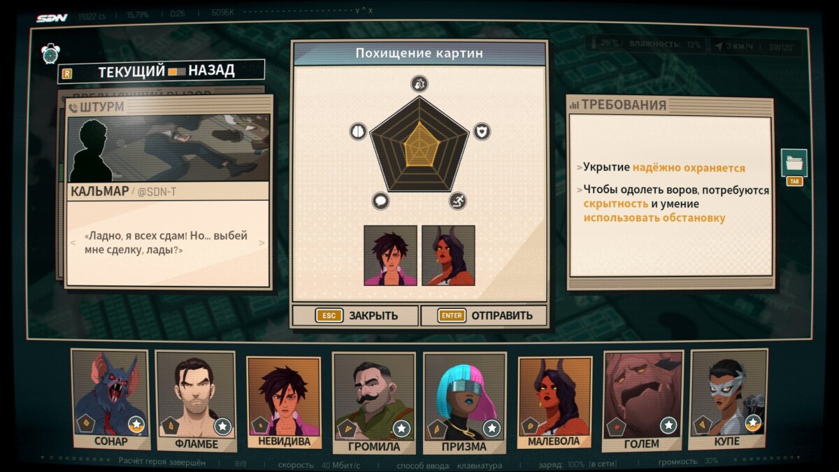 - Задание “Похищение картин” (ОТПРАВИТЬ В ПОСЛЕДНИЕ СЕКУНДЫ) — отправить Невидиву и Малеволу.