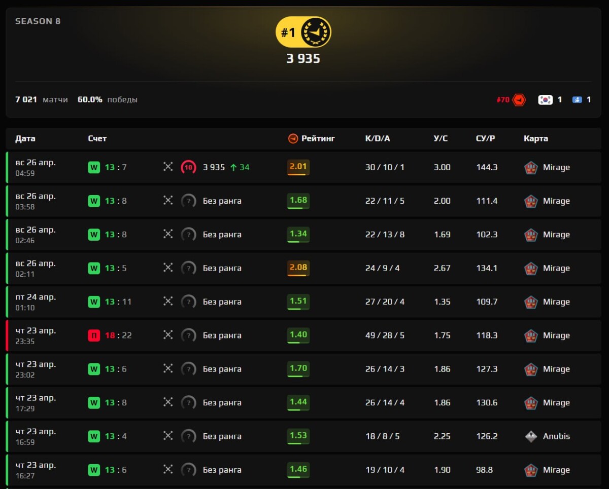Однако вскоре лидерство вернул себе стример Денис "deko" Жуков. На момент публикации материала он опережает donk всего на 69 ELO. Напомним, что изначально, чтобы занять топ-1, ему потребовалось сыграть 10 калибровочных матчей, а затем провести ещё одну дополнительную игру, чтобы обойти румынского киберспортсмена Кристиана "7Kick" Драгоша Радуца. Как вы думаете, это противостояние ещё не раз поменяет лидера? Делитесь мнением в комментариях.