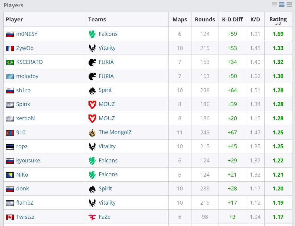 Игрок Team Spirit Данил “donk” Крышковец расположился на 12-й позиции в индивидуальном рейтинге игроков группового этапа турнира IEM Chengdu 2025. Статистика, опубликованная на портале HLTV, демонстрирует доминирование российских и европейских киберспортсменов в топе.