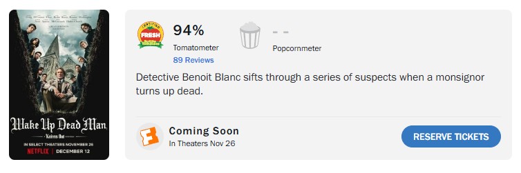 “Достать ножи: Проснись, мертвец” стартует в кинотеатрах 26 ноября 2025 года, а уже 12 декабре картина появится на цифровой платформе Netflix. До российского проката детектив не дойдет.