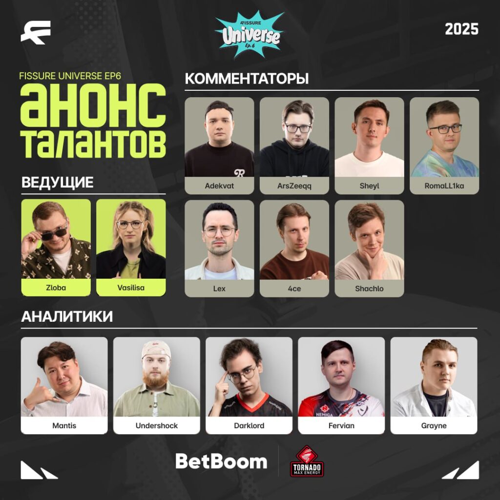 FISSURE Universe Ep.6 приближается к своему финалу. Совсем скоро станет известно какая команда завоюет титул чемпиона и поделит между собой призовой фонд в размере $250 000. Атмосферу и эмоциональное напряжение соревнований обеспечат профессиональные комментаторы и аналитики: