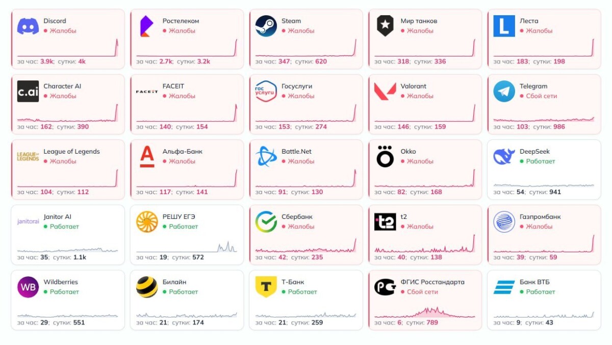 В список пострадавших попали не только развлекательные площадки вроде Steam, Discord, Valorant и League of Legends, но и жизненно важные системы — Госуслуги и отечественные банки. Перебои также затронули маркетплейс Wildberries, операторов мобильной связи и образовательные ресурсы. Инсайдеры связывают происходящее с глобальными проблемами на магистральных сетях или масштабными работами по перенастройке фильтрации трафика.