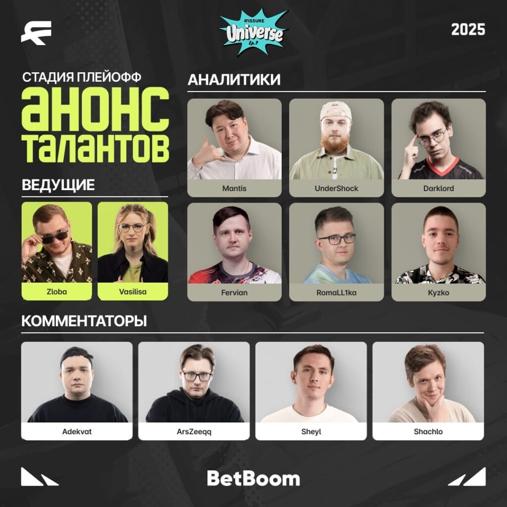 Компания FISSURE объявила список талантов, которые будут работать на финальной стадии FISSURE Universe: Episode 7 по Dota 2. В него вошли известные аналитики и комментаторы, которые уже знакомы зрителям.