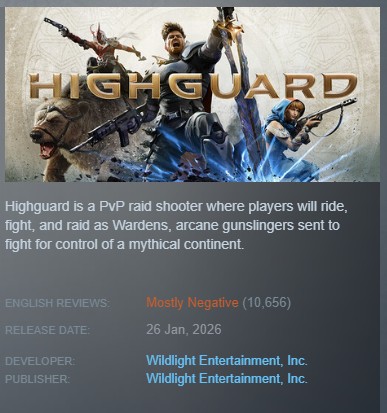 Несмотря на участие бывших разработчиков Respawn Entertainment, релиз шутера Highguard оказался провальным. Отзывы в Steam получили статус “В основном отрицательные” на основе 18 тыс оценок. Геймеры жалуются на технические сбои, проблемы с серверами и ощущение недоработанности проекта.