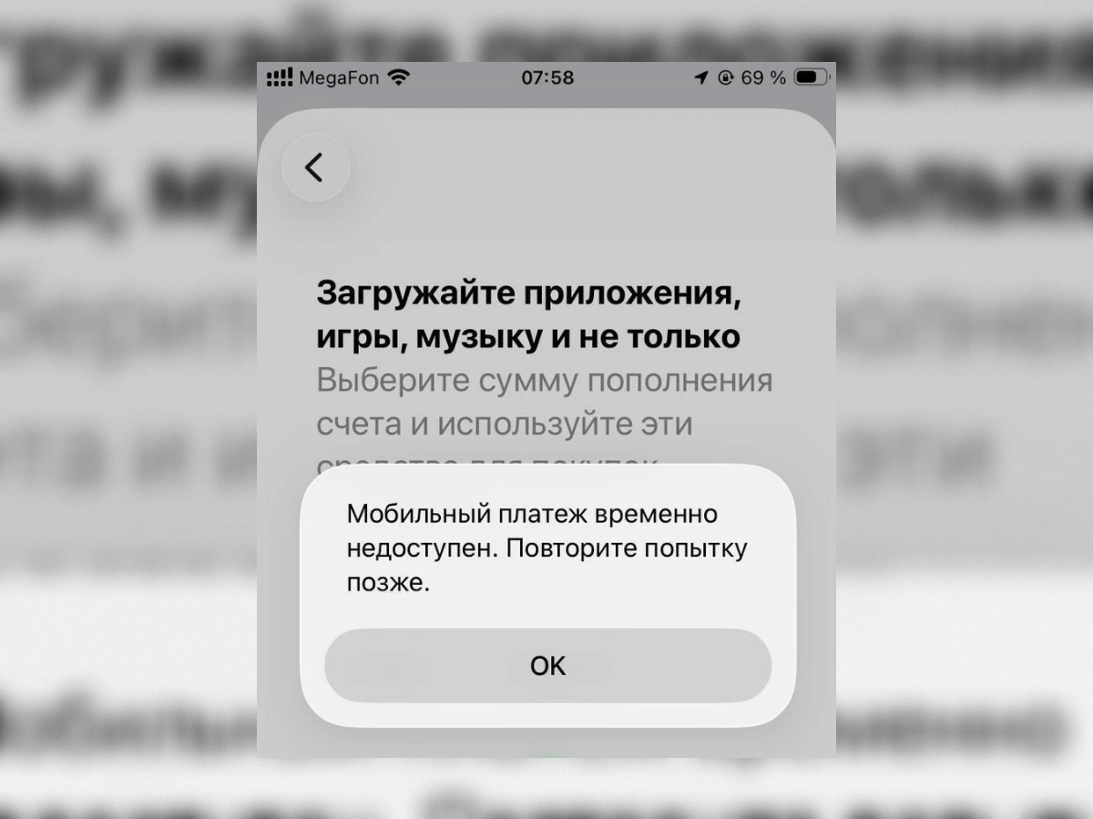 С 1 апреля 2026 года российским владельцам моделей Apple ограничили пополнение баланса Apple ID через мобильные счета. Метод до сих пор оставался единственной лазейкой для покупок приложений и подписок после ухода из страны Visa и Mastercard. Теперь при попытке провести транзакцию пользователи получают системное уведомление о временной недоступности сервиса.