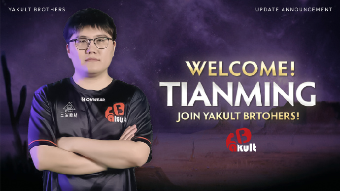 Китайская киберспортсменская организация Yakult Brothers объявила о формировании нового состава. В команде произошла единственная, но значимая замена: на позиции поддержки к ростеру присоединился Цзян “Tianming” Ань, заменивший Уилсона “poloson” Ко Чинь Вэй. Об этом представители сообщили в своих социальных сетях.