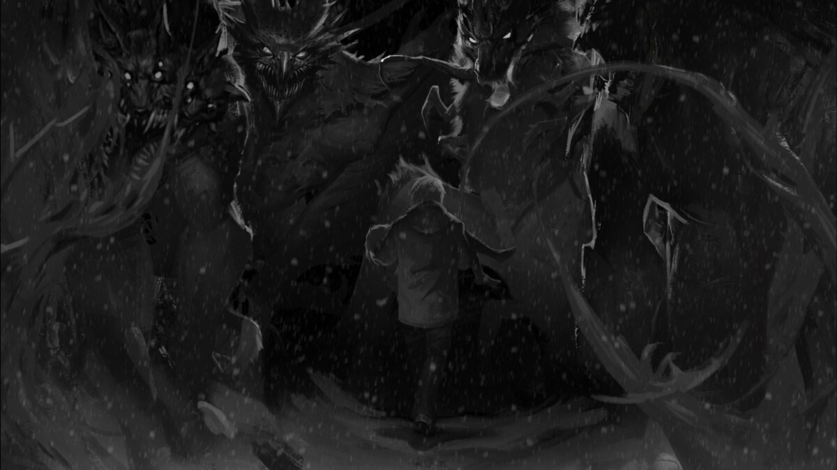Отдельного внимания заслуживает визуальная составляющая. Заявленные 20 концовок, конечно, можно попытаться выбить, чтобы составить полную картину событий во всех деталях и выбить тот самый — хороший финал. Но не меньший восторг здесь доставляет возможность разглядывать гротескные дизайны лесных чудовищ и заставки в эпилоге после титров. Демонические облики Лисы или Волка не только пугают, но и завораживают.