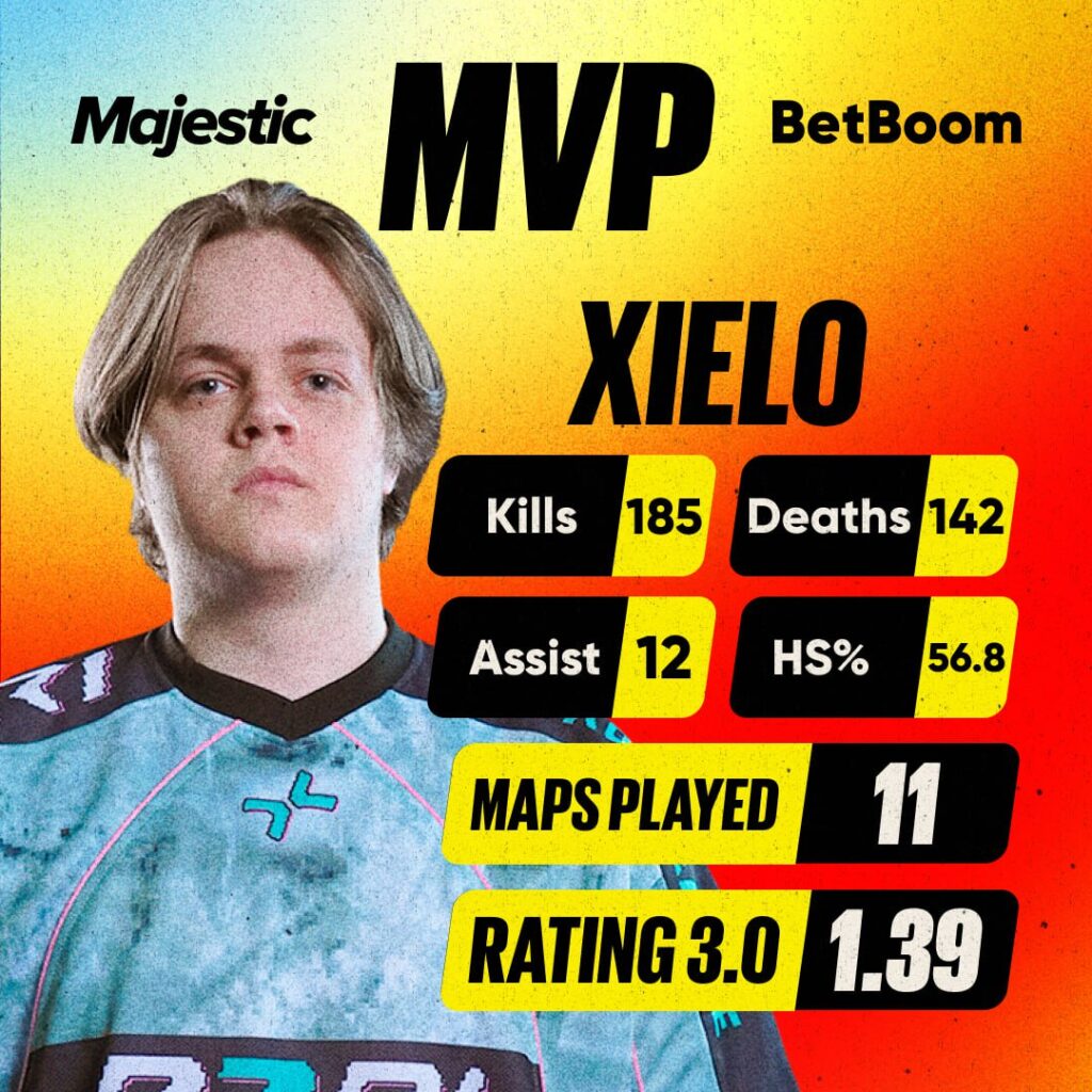 Участник состава PARIVISION по CS2 Владислав “xiELO” Лысов признан самым ценным игроком Majestic LanDaLan Season 3 по версии организаторов турнира. Киберспортсмен завершил турнир с рейтингом 1.39 за 11 карт.