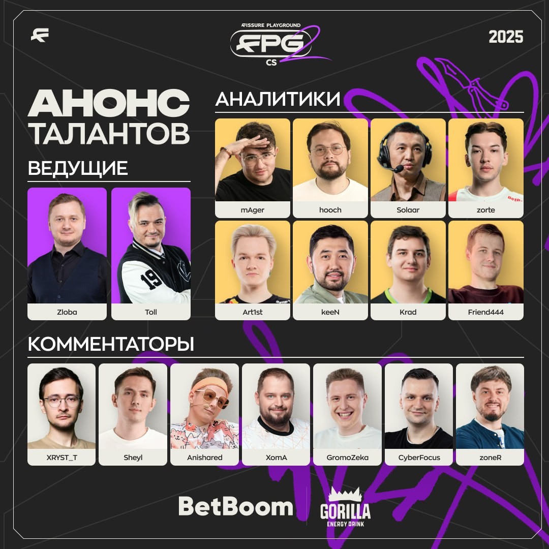 Турнирный оператор FISSURE представил полный список ведущих, комментаторов и аналитиков на предстоящий турнир Playground 2 по CS2. В качестве аналитика к студии присоединился бывший игрок BetBoom Team Александр “zorte” Загодыренко.