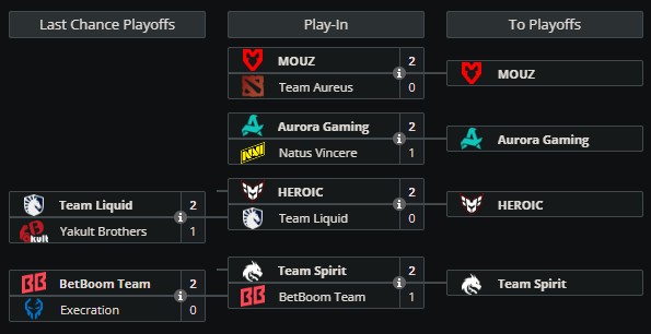 | 5-6 | $50 000 | Team Spirit Aurora Gaming |