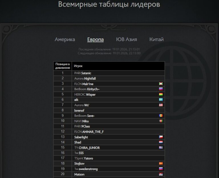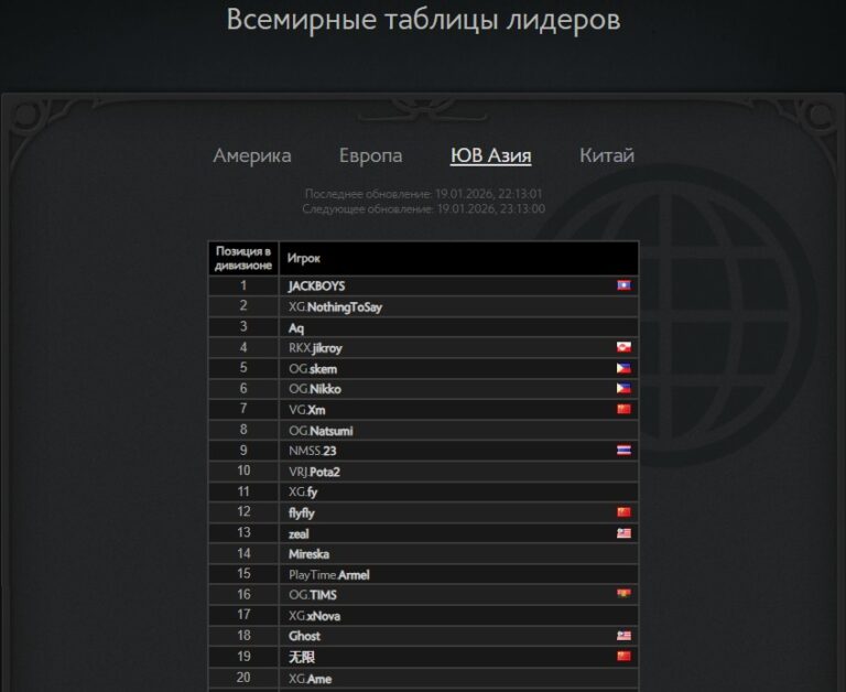 Таблица лидеров Dota 2 обновляется на постоянной основе. Обновление происходит каждый час и напрямую зависит от результатов одиночных рейтинговых матчей игроков в пределах каждого региона. Любые изменения MMR, как победы, так и поражения, отражаются на позиции игрока в таблице, при этом итоговое место формируется с учётом активности и рейтингового прогресса всех участников.