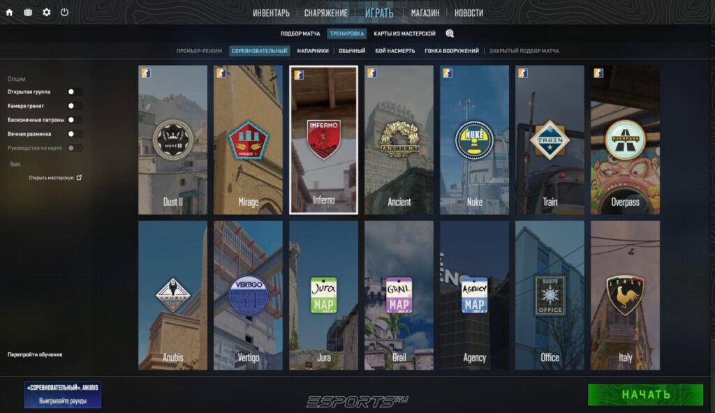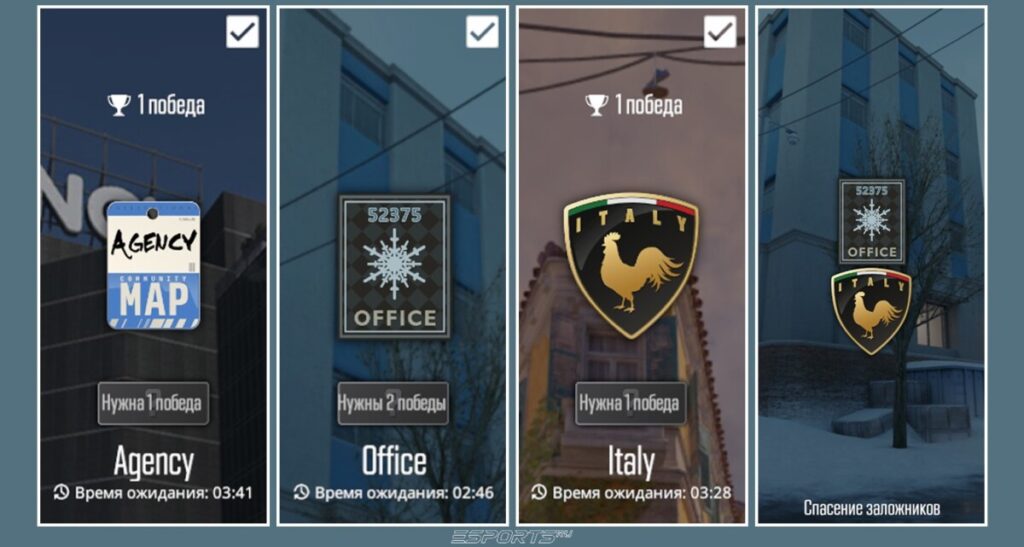 — Рейтинг: доступен в соревновательном варианте на каждую карту от “Серебро 1” до “Всемирная Элита”.