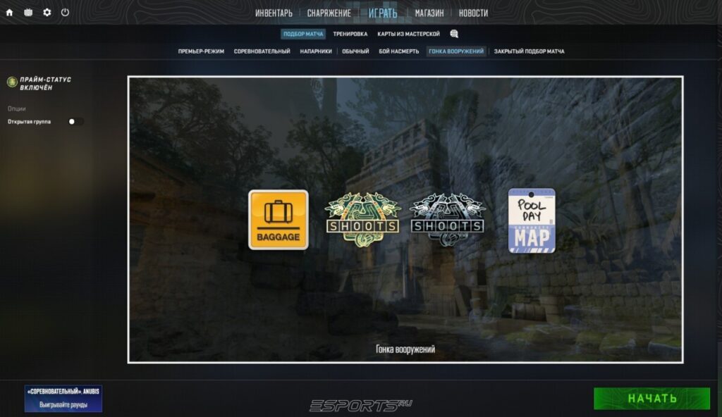 Обычный (Casual) — это нерейтинговый формат, рассчитанный на 20 участников (по 10 в каждой команде). Игроки начинают каждый раунд с броней и шлемом, а экономика значительно упрощена: можно дольше закупаться, и нет строгого ограничения по деньгам. Матчи короче, чем в соревновательных режимах, а присоединиться или выйти из них можно в любой момент. Такой формат часто используют новички для знакомства с механикой CS2. Casual также подойдет для отработки стрельбы в условиях большего количества соперников на карте.