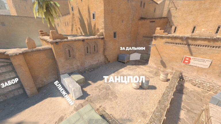Пальма* — в ранней версии карты на месте привычных новым игрокам бочек стояла пальма. Она была высокой, из-за чего бросалась в глаза игрокам и была хорошей ассоциацией для запоминания позиции. Позже растение пропало с карты, однако игроки продолжают использовать его название в качестве обозначения одной из позиций.