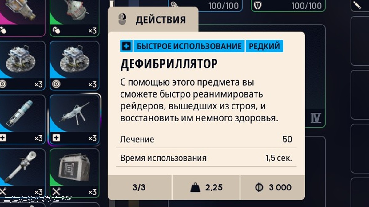 - Дефибрилляторы — если же, наоборот, отдать предпочтение “кооперативному” взаимодействию с другими игроками, то иметь с собой несколько лекарств для реанимации может спасти жизнь случайному союзнику, вступившему в бой с “Ракетчиком”, снайпером или нарвавшемуся на ловушку.