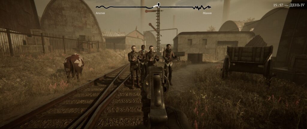 Система психики в Pathologic 3 отображается в виде шкалы апатии/мании в верхней части экрана. Этот “индикатор настроения” даёт возможность отслеживать состояние Данковского. В начале игра подсказывает, что идеале оно должно быть уравновешенным с отметкой ровно по центру, иначе можно скатиться в одну из двух крайностей: