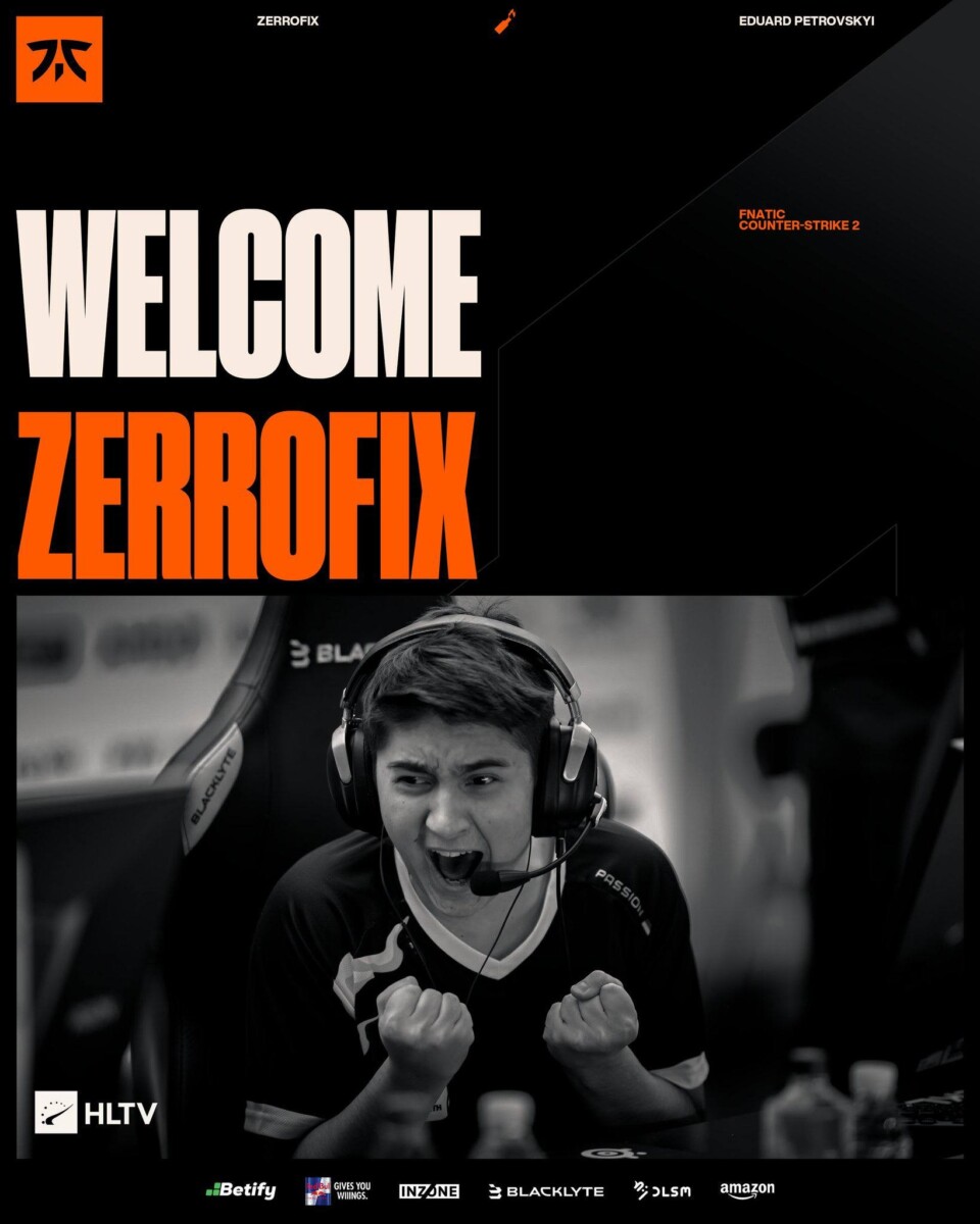 Организация Fnatic представила стендина, который выступит за состав по CS2 в квалификации на ESL Pro League Season 22. Им стал украинский киберспортсмен Эдуард “zeRRoFIX” Петровский. Об этом представители клуба сообщили в социальных сетях.