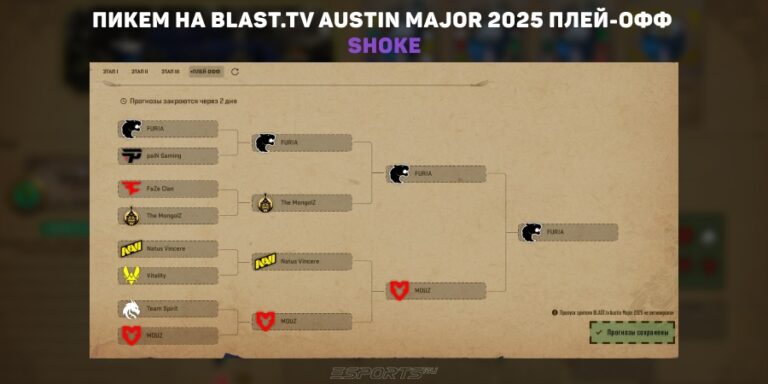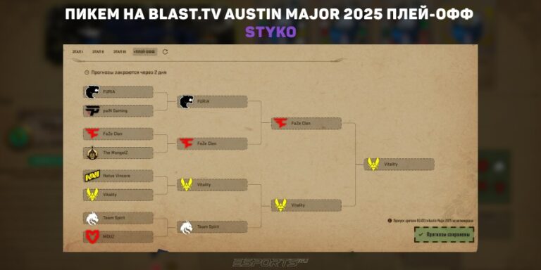 В четверг, 19 июня, стартует финальная стадия BLAST.tv Austin Major 2025. Редакция Esports.ru собрала пикемы на плей-офф мейджора от игроков, аналитиков и стримеров. Если вы ещё не решили, какие команды выбрать, ниже — подборка предиктов, среди которых вы сможете найти что-то подходящее.