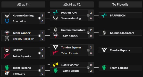 | 9-12 | – | $75 000 | Xtreme Gaming Team Yandex Talon Esports Natus Vincere |