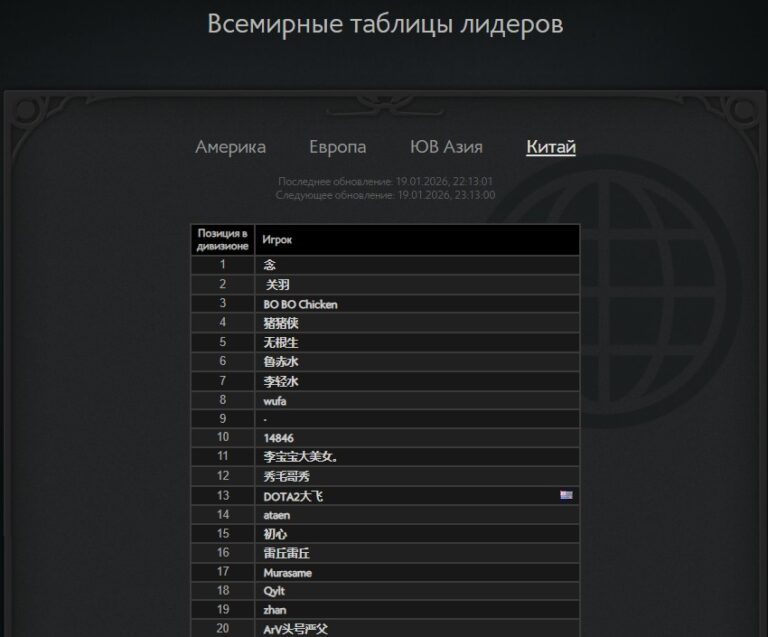 Таблица лидеров Dota 2 обновляется на постоянной основе. Обновление происходит каждый час и напрямую зависит от результатов одиночных рейтинговых матчей игроков в пределах каждого региона. Любые изменения MMR, как победы, так и поражения, отражаются на позиции игрока в таблице, при этом итоговое место формируется с учётом активности и рейтингового прогресса всех участников.